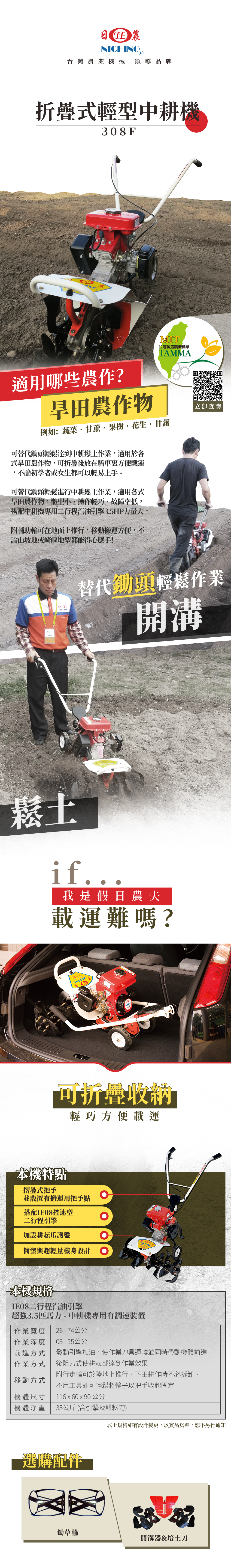 日農 308F 折疊式輕型中耕機